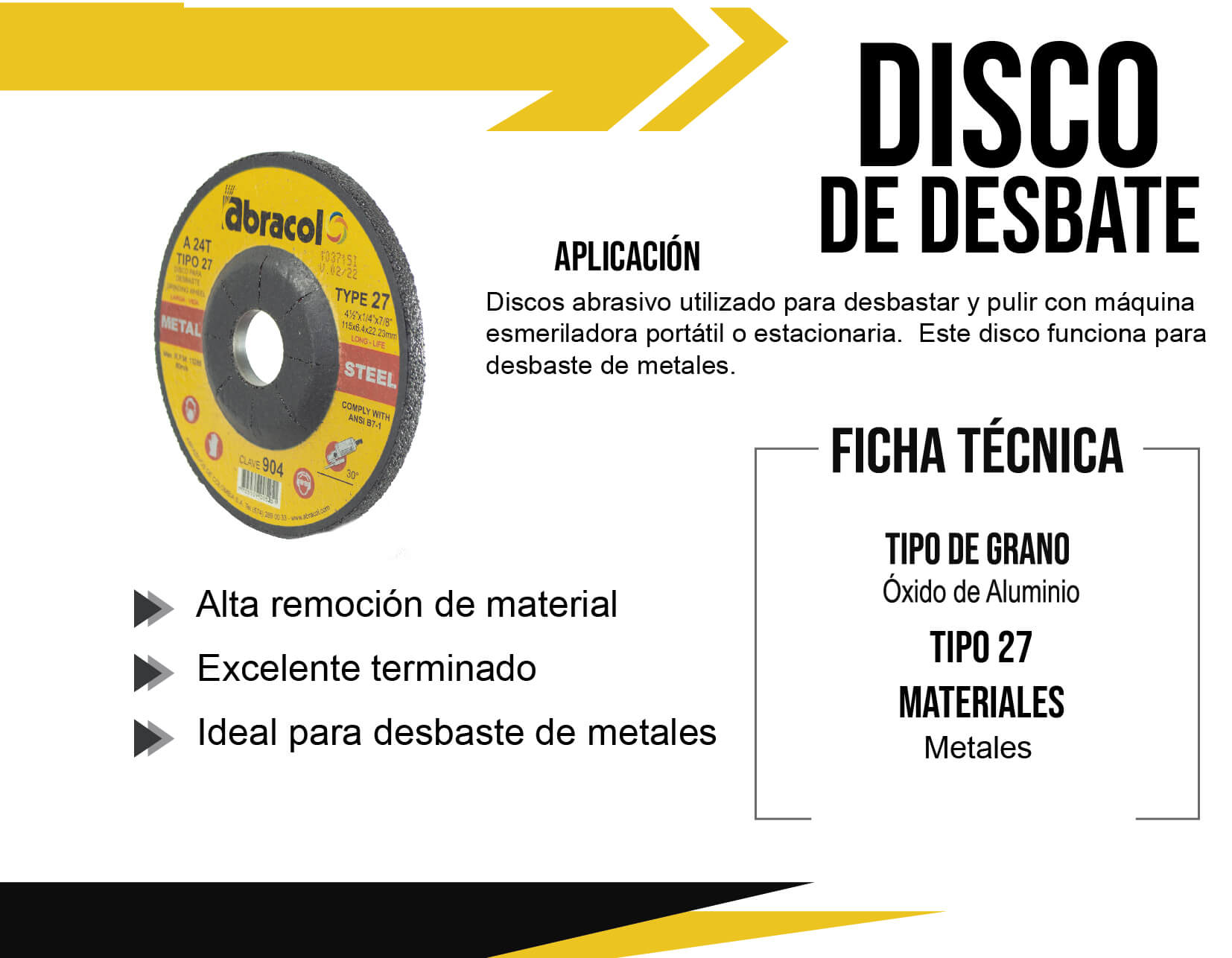 Disco abrasivo plano t1 de corte de metales, para trabajar en maquina tronzadora con 2 fibras internas que permite un corte mas rapido , menos rebaba en el material. disco de alto desempeño con grano en oxido de aluminio 30.